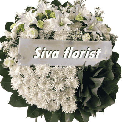 พวงหรีดดอกไม้สดโทนขาวเขียว ขนาด 100 เซ็นติเมตร จัดสวยดอกไม้แน่น