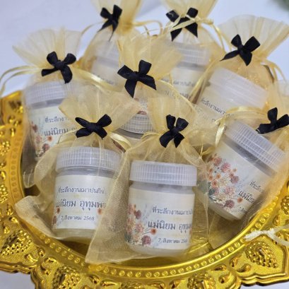 ของชำร่วยพิมเสนน้ำกระปุกสำลี ฟรีแพคเก็จข้อความป้าย