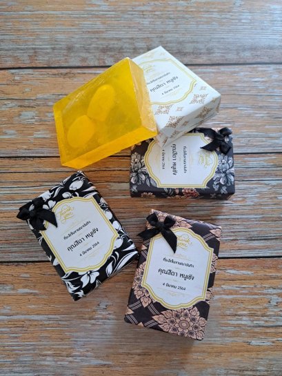 สบู่ไยไหมพร้อมแพคเก็จข้อความ ชื่อและวัน ฌาปนกิจ ใช้งานได้จริง
