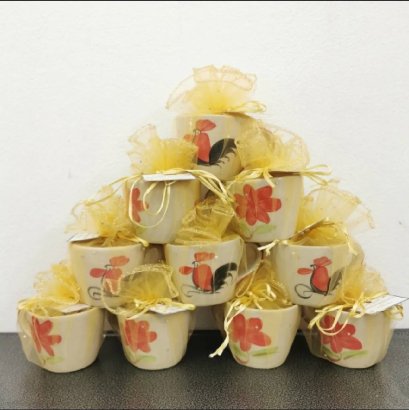 แก้วกาแฟตราไก่ ขนาดเส้นผ่าศูนย์กลางประมาน 8 เซ็นติเมตร สูง 6 เซ็นติเมตร