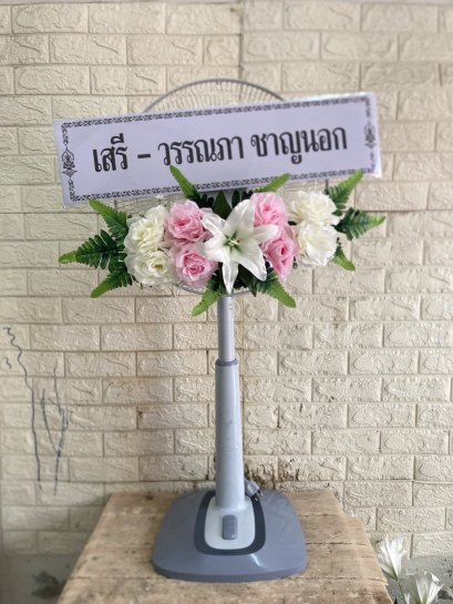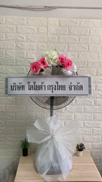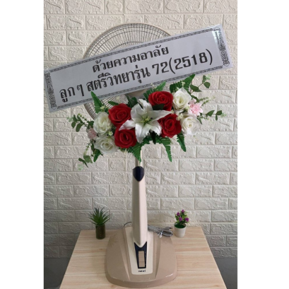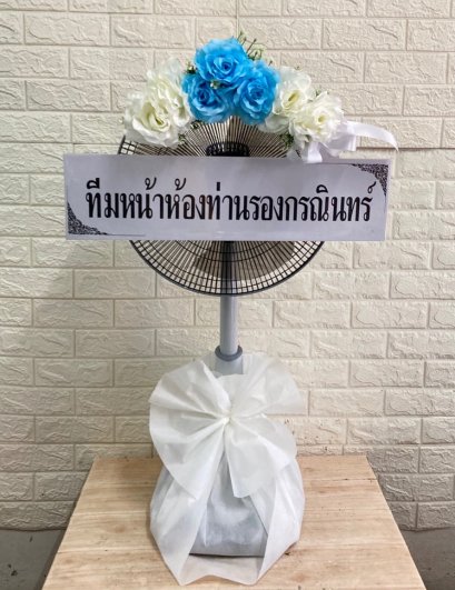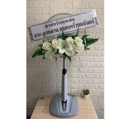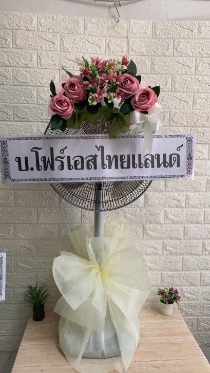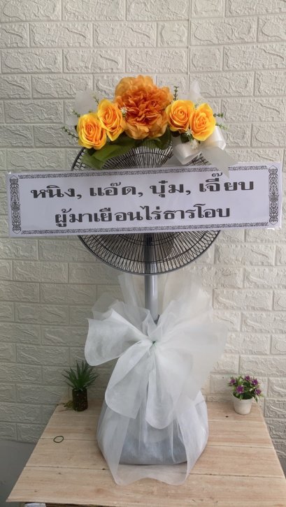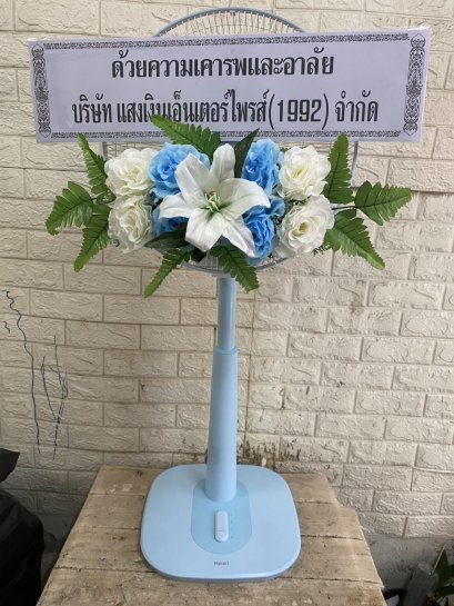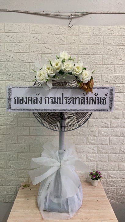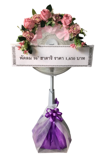 พัดลม DTECH ขนาด16'' ปรับระดับได้ ประดับด้วยดอกไม้ประดิษฐ์ นอกจากเอาไว้แสดงความอาลัยแล้ว วัดหรือเจ้าภาพยังสามารถนำไปบริจาคได้ด้วย สั่งซื้อได้ที่ Line @sivaflorist