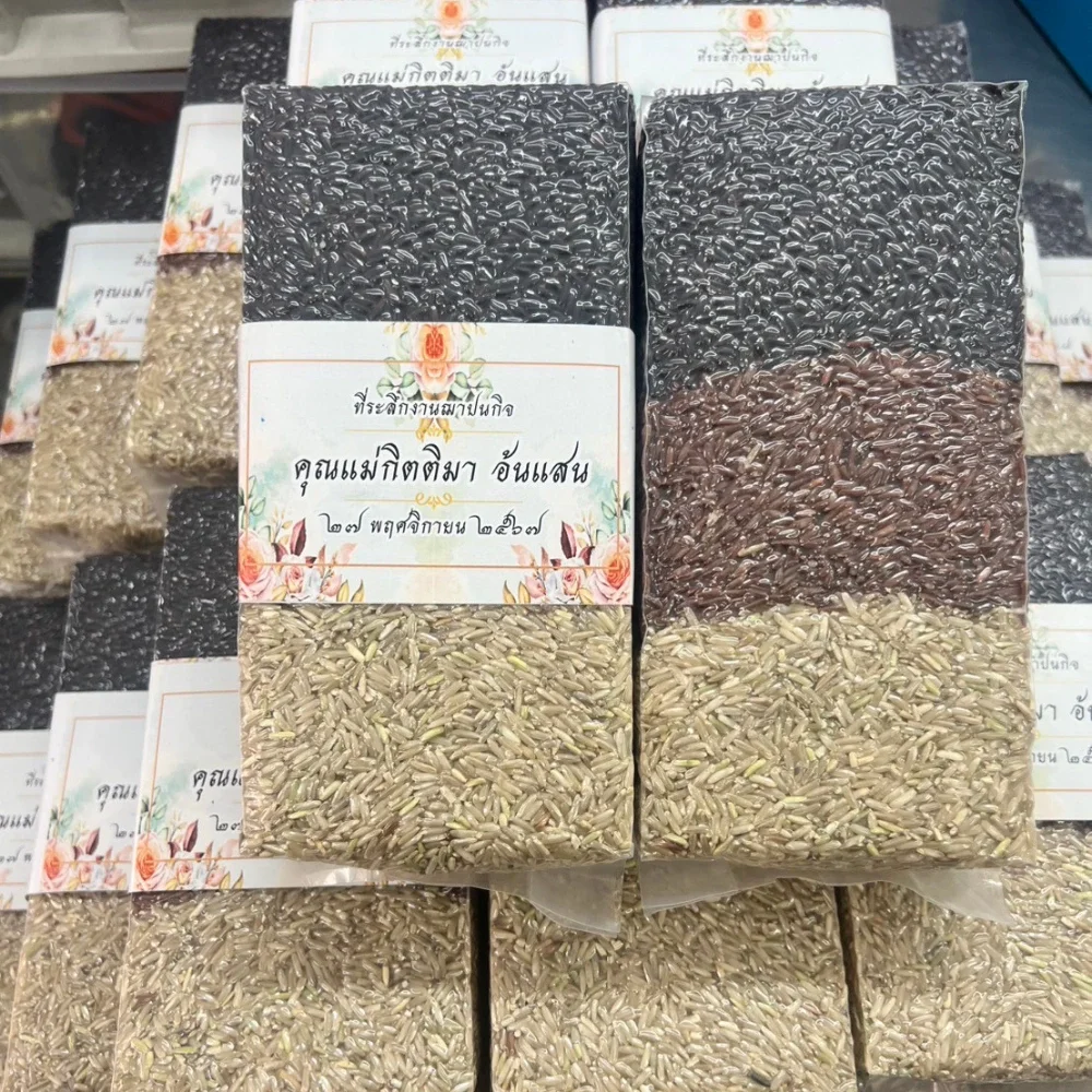 ของชำร่วยข้าวสาร 3 สี ฟรีสติ๊กเกอร์งานฌาปนกิจ ข้าวสารกรอกใหม่ทุกออร์เดอร์