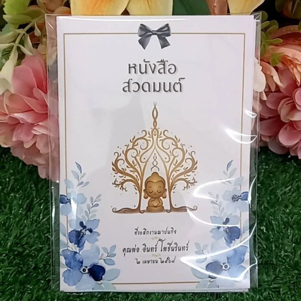 หนังสือสวดมนต์ 20 หน้า ฟรีออกแบบหน้าปกและชื่อผู้เสียชีวิต ประกอบด้วยมนต์สวดมนต์สำคัญอาราธนาศีล ชินบัญชรและอื่นๆ